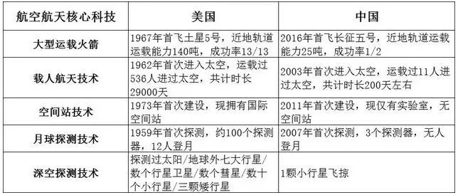 另外,美國在重型/超重型火箭的設計及製造、空間站技術、月球探測技術、深空探測技術等領域的成就仍無人突破。