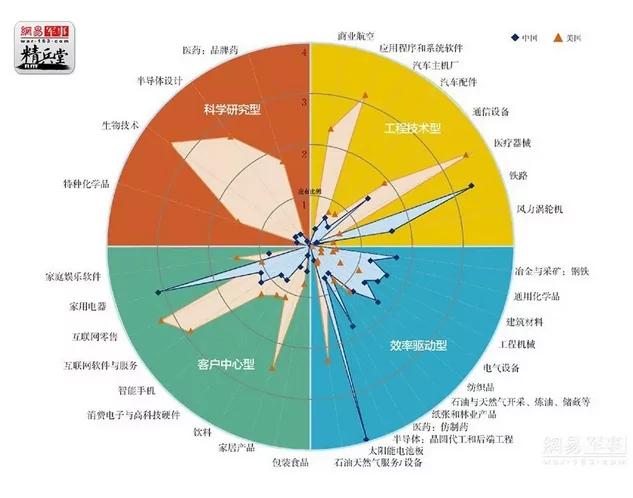 這張2013年麥肯錫發布的中美科技差距雷達圖到現在仍不過時。 中國要趕上美國現在的科技成就,至少要花上20年。